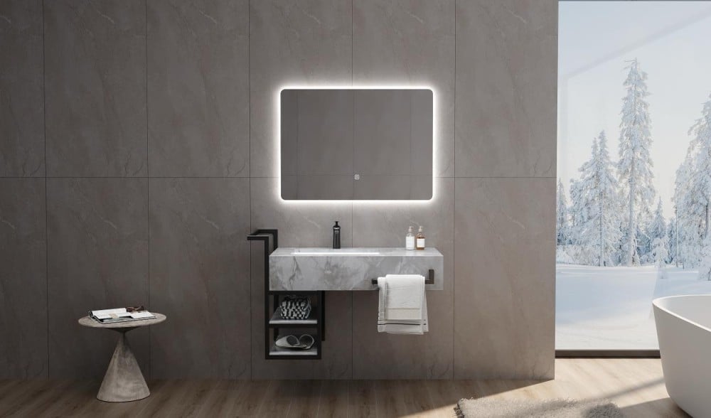 مغسلة رخام رمادي فاخرة مع ارفف سوداء - مقاسات متعددة