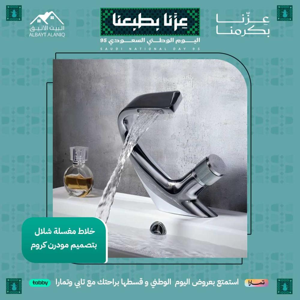 ارتقِ بمساحة حمامك مع خلاط المغسلة الشلال المودرن من البيت الأنيق. يجمع هذا الخلاط بين الأناقة والوظائف العملية، حيث يتميز بتصميمه العصري الذي يضفي لمسة جمالية على مغسلتك.